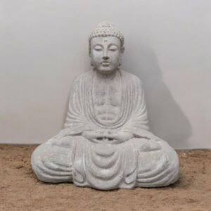 La figura de Buda destaca por su diseño sereno y detallado, ideal para quienes buscan un elemento decorativo que transmita paz y armonía. Su acabado en fibrocemento combina robustez y ligereza, permitiendo su colocación tanto en interiores como en jardines y espacios al aire libre.