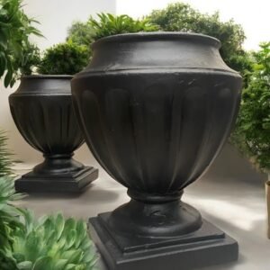 La Copa Gótica evoca el esplendor de los jardines clásicos con su silueta ornamentada y su base pedestal. Su forma simétrica y los detalles en relieve aportan un carácter majestuoso que realza tanto entradas y escalinatas como patios y rincones interiores con aire señorial.