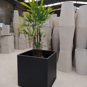 Perfecto para árboles pequeños, plantas de gran volumen o como contenedor de conjuntos verdes, este cubo es ideal para exteriores, terrazas o proyectos paisajísticos que requieren piezas de gran escala.