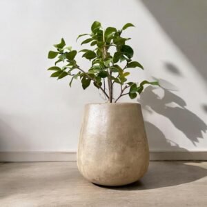 Disponible en distintos acabados, esta pieza permite jugar con combinaciones de textura y color para integrarse a espacios modernos, rústicos o escandinavos, tanto en interiores como en exteriores. Es ideal para lucir plantas frondosas o colgantes, realzando su volumen con una base visual sólida y elegante.