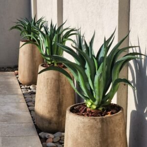 Disponible en distintos acabados, esta pieza permite jugar con combinaciones de textura y color para integrarse a espacios modernos, rústicos o escandinavos, tanto en interiores como en exteriores. Es ideal para lucir plantas frondosas o colgantes, realzando su volumen con una base visual sólida y elegante.