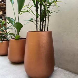 La maceta Malbec se destaca por su forma redondeada y envolvente, inspirada en una gota de agua en reposo. Su diseño orgánico, de base amplia y boca suavemente afinada, aporta una presencia serena y natural que se adapta con armonía a distintos estilos de decoración.