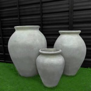 Ideal para plantas de gran porte, ramas secas o incluso como objeto decorativo independiente, la Tinaja se adapta tanto a exteriores rústicos como a interiores sobrios y elegantes. Su diseño atemporal resalta por su capacidad de equilibrar volumen y armonía, integrándose con naturalidad a entornos clásicos o contemporáneos.