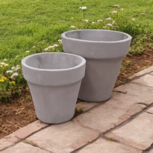 Inspirado en las macetas tradicionales de jardín, el Vaso Colonial combina un diseño clásico con la nobleza del fibrocemento. Su silueta cónica con borde superior ancho lo convierte en un modelo versátil, ideal para plantas medianas y grandes.