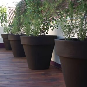 Inspirado en las macetas tradicionales de jardín, el Vaso Colonial combina un diseño clásico con la nobleza del fibrocemento. Su silueta cónica con borde superior ancho lo convierte en un modelo versátil, ideal para plantas medianas y grandes.